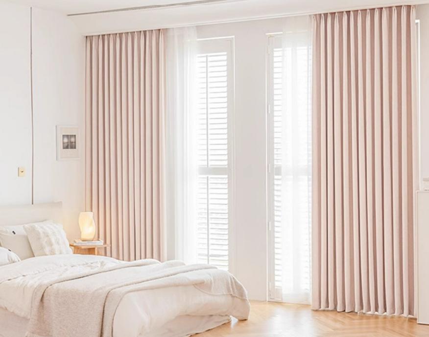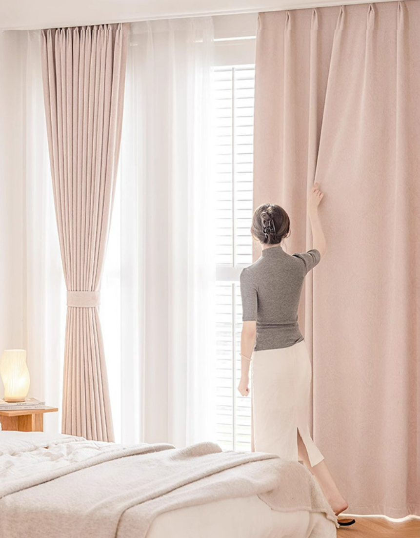 Rideau occultant rose pale jacquard feuilles chambre